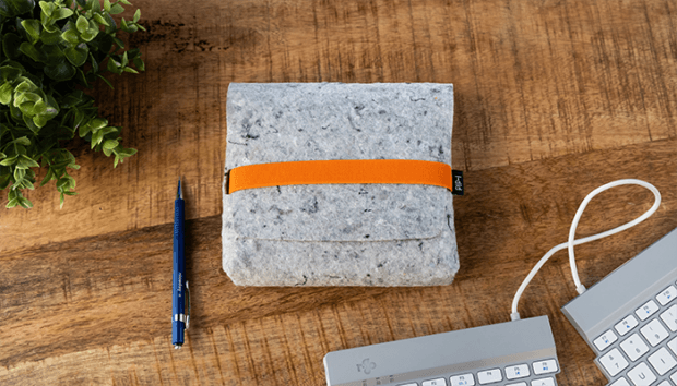 This protective bag is made of soft, durable felt produced from recycled textiles. The R-Go Pouch is square and compact, and the two halves of a split keyboard fit perfectly inside when placed side by side. An orange elastic band closes the pouch and gives it an instant trendy look. Specially designed to transport your split keyboard easily and safely: ergonomics in a pouch!