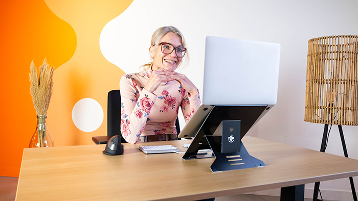 This laptop stand not only raises your monitor, but also has a document holder. You can place your papers in front of the laptop keyboard while working. Both your screen and papers are brought more up to eye level, which will automatically stimulate you to sit straight. The way to prevent annoying pains in neck, shoulders and back.