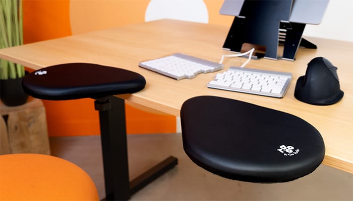 The R-Go Split armrest provides optimal support for the forearms during monitor work. The two separate parts allow you to optimally personalize the armrest so that the arms are supported close to the body. Each part is separately adjustable and can be rotated and slid on the desktop as desired. In other words: the armrest that fits everyone! Using the R-Go Split armrest, you will automatically adopt an upright working posture, giving relaxation in the neck and shoulders. This armrest is padded and therefore feels soft and comfortable. The R-Go Split armrest fits virtually all desktops.