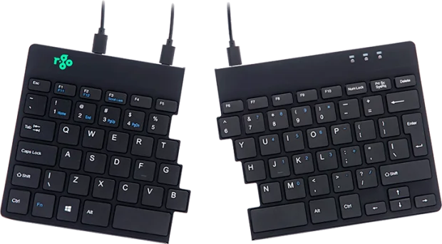 The R-Go Split Break keyboard is an ergonomic split keyboard with integrated break software. This keyboard stimulates you to take regular breaks. This keeps your body’s blood flowing, prevents strain and keeps you fit during your working day. The keyboard consists of two separate parts, which you can place in any set-up you desire. This splitting prevents flexing of the wrists while typing. Typing with straight wrists reduces muscle tension and prevents oppressing of tendons and blood vessels. The built-in magnet allows you to turn the two separate parts of the keyboard into a compact keyboard with just one movement. The compact size ensures that the mouse is always within reach. The light keystroke means minimal muscle tension is present while typing. The keyboard is flat, keeping your hands and wrists flat and relaxed while typing. LED colour signals in the keyboard indicate how healthy you are working and when it is time for a break. As you type, the light changes colour, like a traffic light. Green means that you are working healthily, orange means that it is time for a break, red that you have been working too long. Through these subtle colour signals, you receive feedback on your break behaviour in a simple and positive way. This product works together with the R-Go Break Software that won the Benelux Office Product Award 2021.