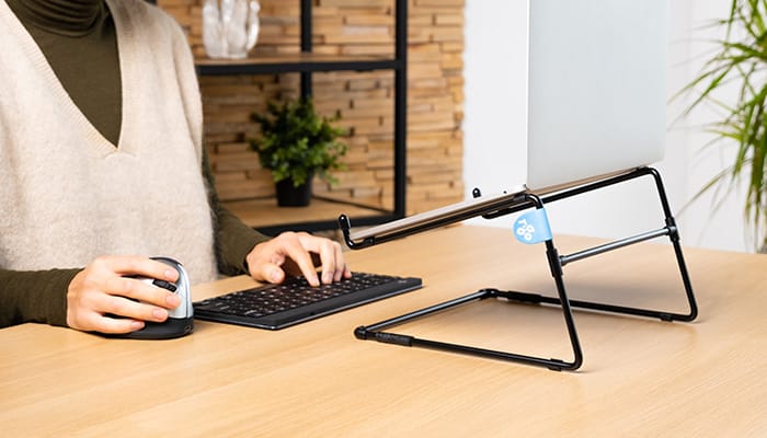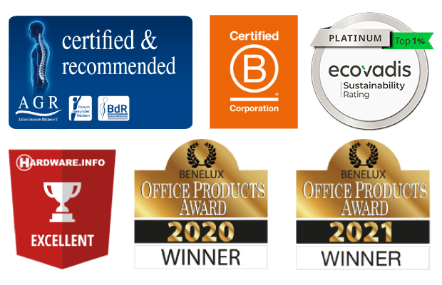 We strive for ergonomic solutions that suit everyone, regardless of your height, posture and left- or right-handedness. Our new products are assessed by external ergonomists and a test panel of users. Since June 2022, our ergonomic mice, Break keyboards, Riser laptop stands, monitor arms, document holders and Treepod laptop and tablet stand are also AGR certified. In addition, we won the Benelux Office Award for the Break software and our Viva laptop bag.